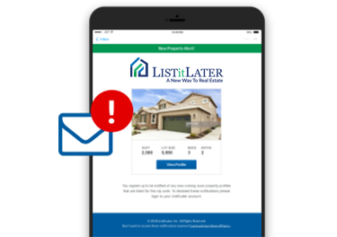 Receive a text or email alert when a property is pre-listed for sale on ListItLater, and or becomes available for sale.